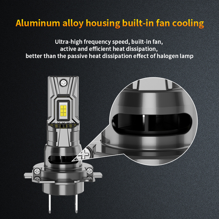 Aktivní chladicí systém pro prodlouženou životnost: S vestavěným, ultra-vysokorychlostním ventilátorem v hliníkovém pouzdře poskytuje tento systém aktivní a efektivní odvod tepla. Toto vynikající chlazení je účinnější než pasivní správa tepla u halogenových lamp, chrání LED čipy a prodlužuje celkovou životnost produktu.