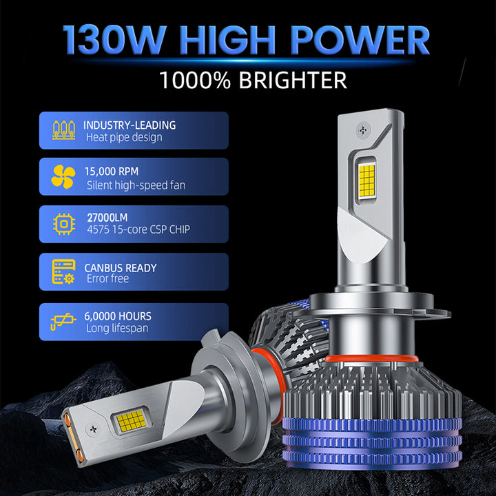 ⚡ 1000% Jasnější a Ultra Zaměřený Paprsek (27000LM, 130W): Upgrade z matných halogenů na průmyslově vedoucí 130W (za sadu) vysokovýkonný výstup, který poskytuje neuvěřitelných 27 000 lumenů6500K bílého světla. Vybaveno pokročilými 15jádrovými CSP 4575 čipy pro super zaměřený, širší a dálkový paprsek, který zajišťuje bezpečnější noční jízdu bez tmavých míst.